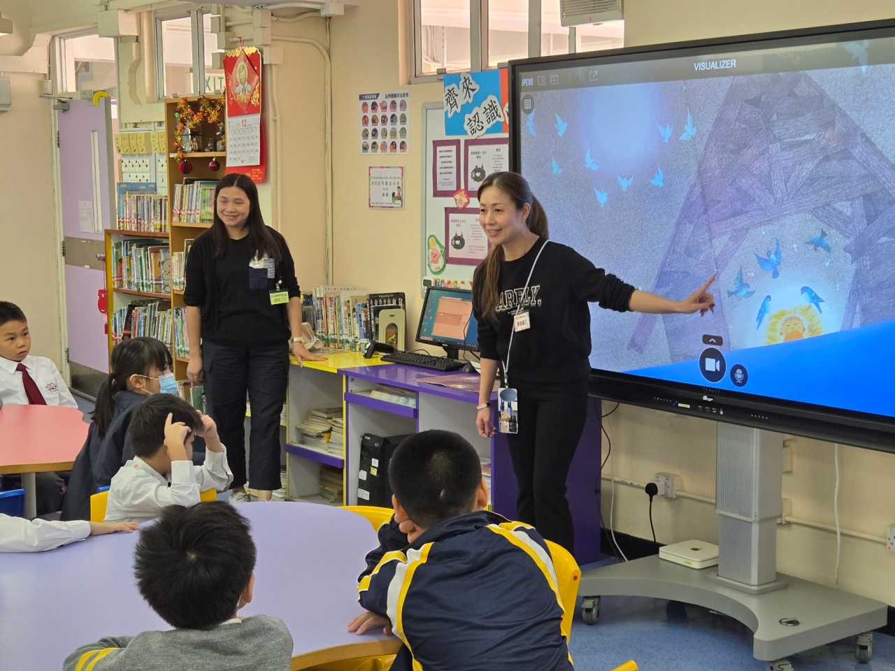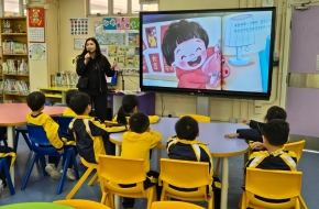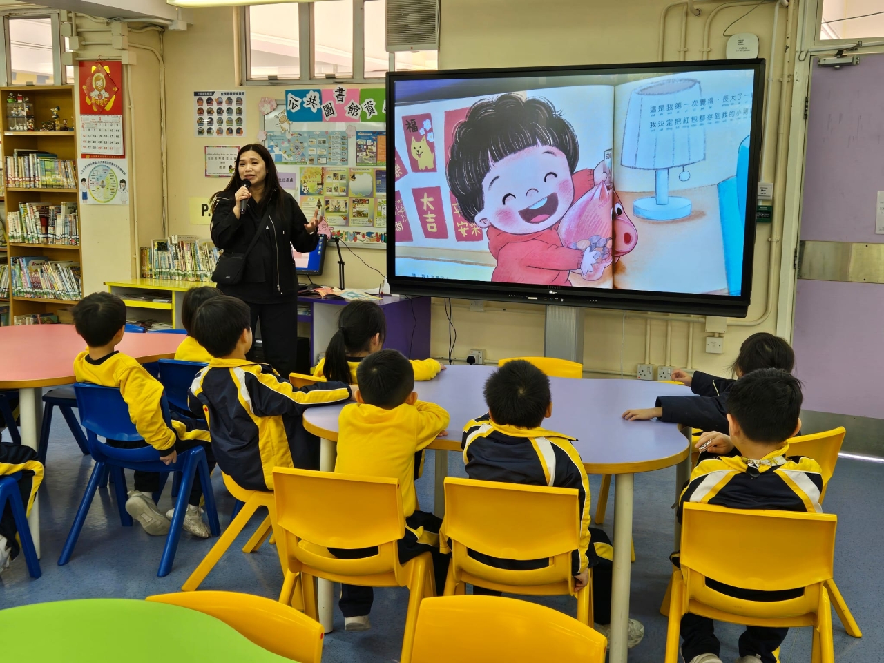 本校會定期邀請家長義工到校作故事姨姨為小一及小二學生講故事,為了令故事更加精彩,家長會加入提問、學生生活經驗分享,使學生更投入於故事當中,增加其閱讀興趣。