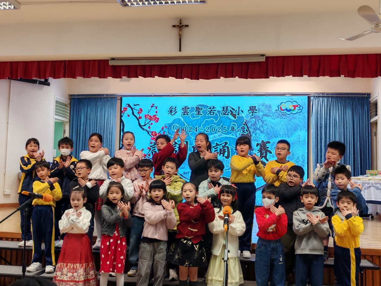 本校中文科於四月三日舉辦了一至三年級班際詩詞朗誦大賽,旨在鼓勵學生欣賞和多朗讀中國古典詩詞。今年的活動特別配合了「踏青節」,各班所朗誦的詩歌均與郊遊有關,讓學生在朗誦中感受春天的生機與自然的美好。這次比賽不僅提供了展示才華的平台,還促進了學生對詩詞文化的理解和興趣,培養他們的語言表達能力和自信心。