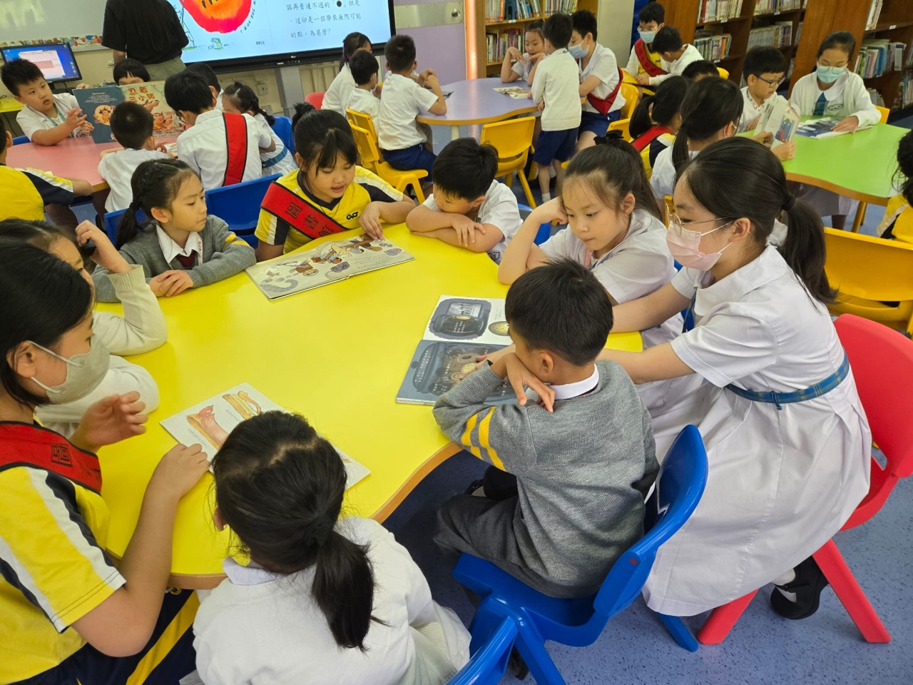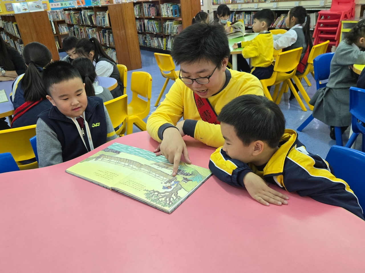 圖書館助理員亦會被挑選及訓練成為伴讀大使,於午休時段向一、二年級學生講故事,陪伴低年級同學選擇合適的圖書。同時帶領同學參加節慶活動。