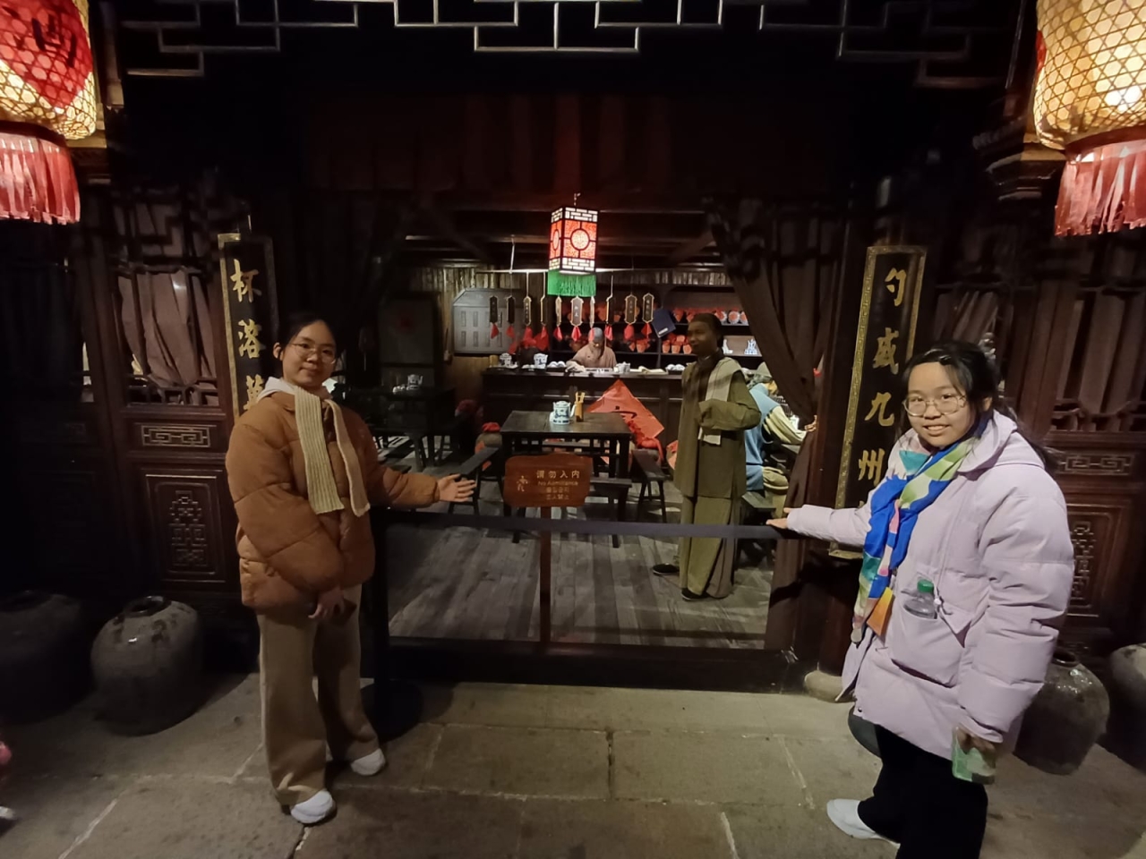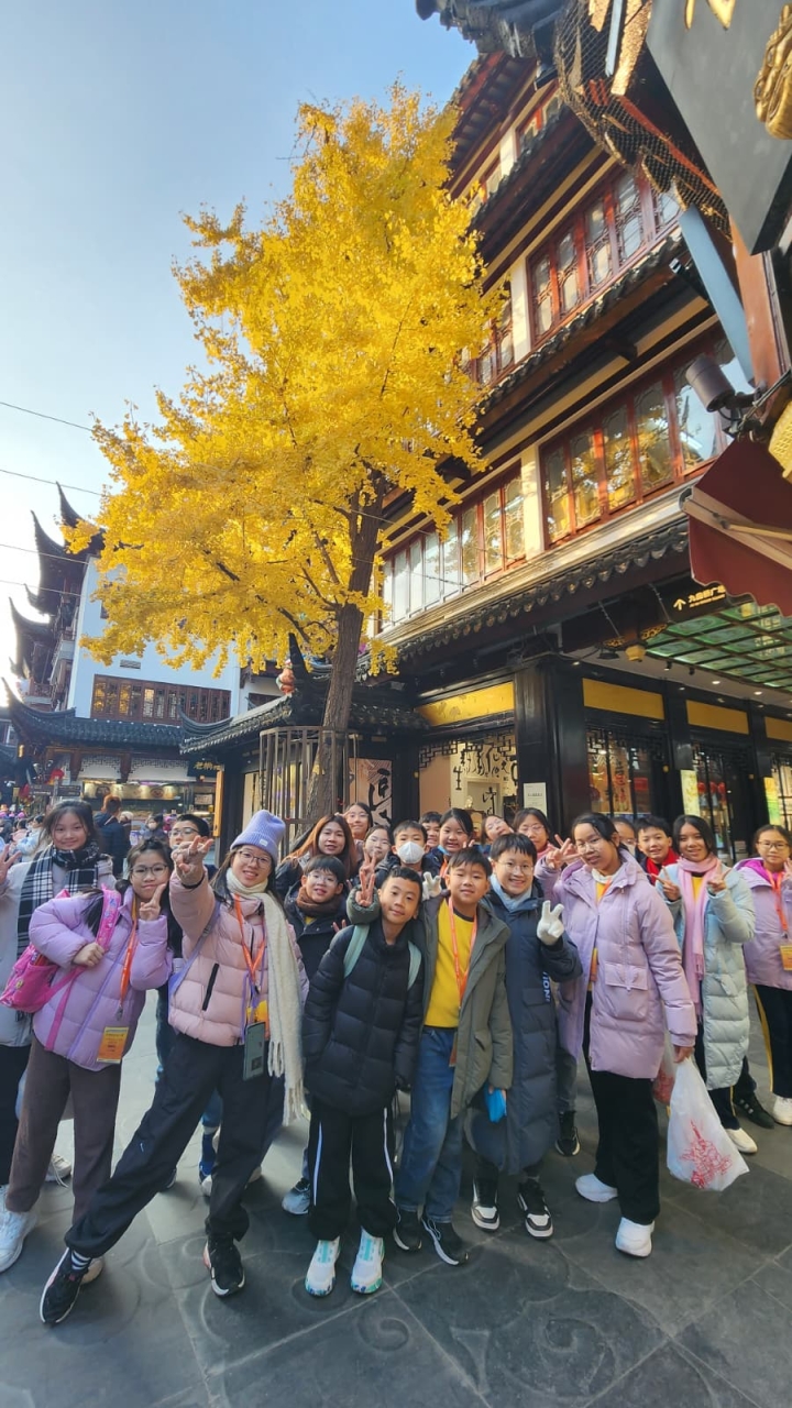 下午我們到豫園參觀。走進中式的亭臺樓閣中,我們仿佛穿越到古代,園中古樹、小橋、回廊及金黃色的落葉在冬日暖陽的灑照下,構成一幅優美的山水畫,令人目不暇給。